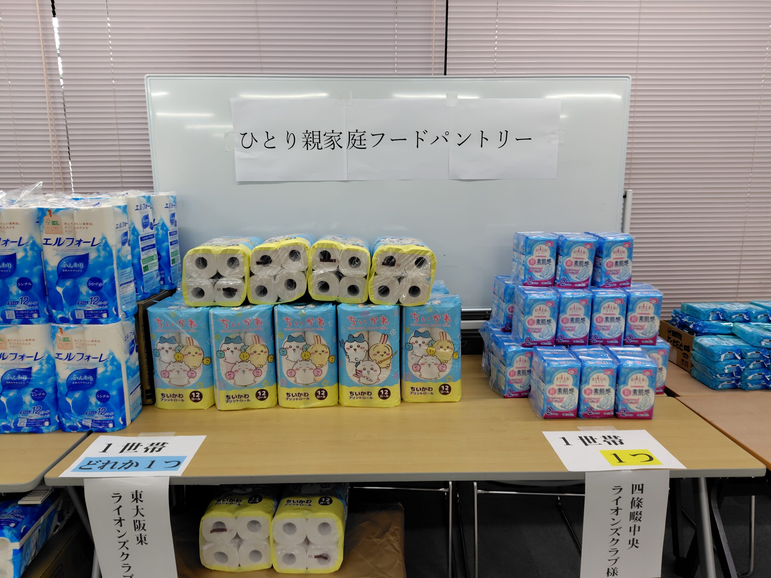 東大阪市母子寡婦福祉会として初めての試みでしたが、協賛の東大阪東ライオンズクラブ様からもたくさんの食品や日用品をご寄付いただき、当日は賑やかに開催することができました☺